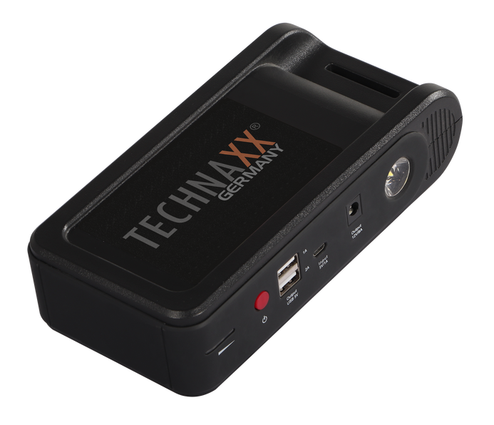 Verpackungsinhalt: - Technaxx Jump Starter TX-218, Adapterkabel mit Polzangen, AC Adapter, USB-Kabel, Adapter KFZ-Buchse, Gebrauchsanleitung