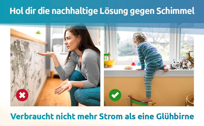Entfernt Schimmel von Wänden. Das M1-Basismodul geht das Problem des Schimmels in der Wohnung an, indem es ihn bekämpft. Es trocknet die Wände und bekämpft die Feuchtigkeit dank der Infrarot-Wärmestrahlen, die bis ins Innere der Wände vordringen. Einzigartige Investition - Dieses Produkt kann in allen Räumen eingesetzt werden und trocknet die Wände vollständig, so dass sie perfekt genutzt werden können. Die nachhaltige Alternative zur Beseitigung von Feuchtigkeit ohne den Einsatz von Chemikalien. MouldDry funktioniert ohne den Einsatz von Chemikalien oder anderen Reinigungsmitteln, die die Gesundheit von Kindern und Haustieren gefährden. Das Produkt bietet lang anhaltenden Schutz vor Schimmel und ist einfach in der Anwendung. Auch die Umwelt wird Ihnen diese Entscheidung danken! Patentierte Technologie - völlig anders als bei klassischem Anti-Schimmel. Die einzigartige Beschichtungstechnologie wurde vom Frauenhofer Institut entwickelt und hat bereits mehr als 10.000 Kunden überzeugt. Unser MouldDry beseitigt Schimmel durch Wärmeabstrahlung, die in die Wand eindringt. Es ist auch ideal für die Entfernung von Schimmel an Fenstern. Der ultimative Schimmelkiller