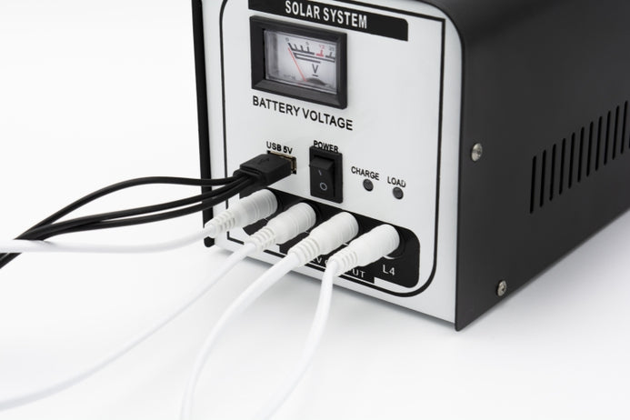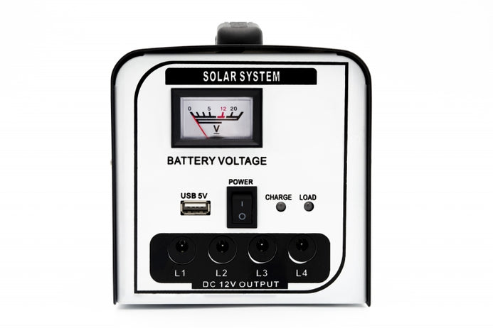 Package contents: - Powerstation, 18W solar panel, 4pcs LED bulbs, 4pcs E27 lamp adapter, power adapter, USB charging adapter, user manual