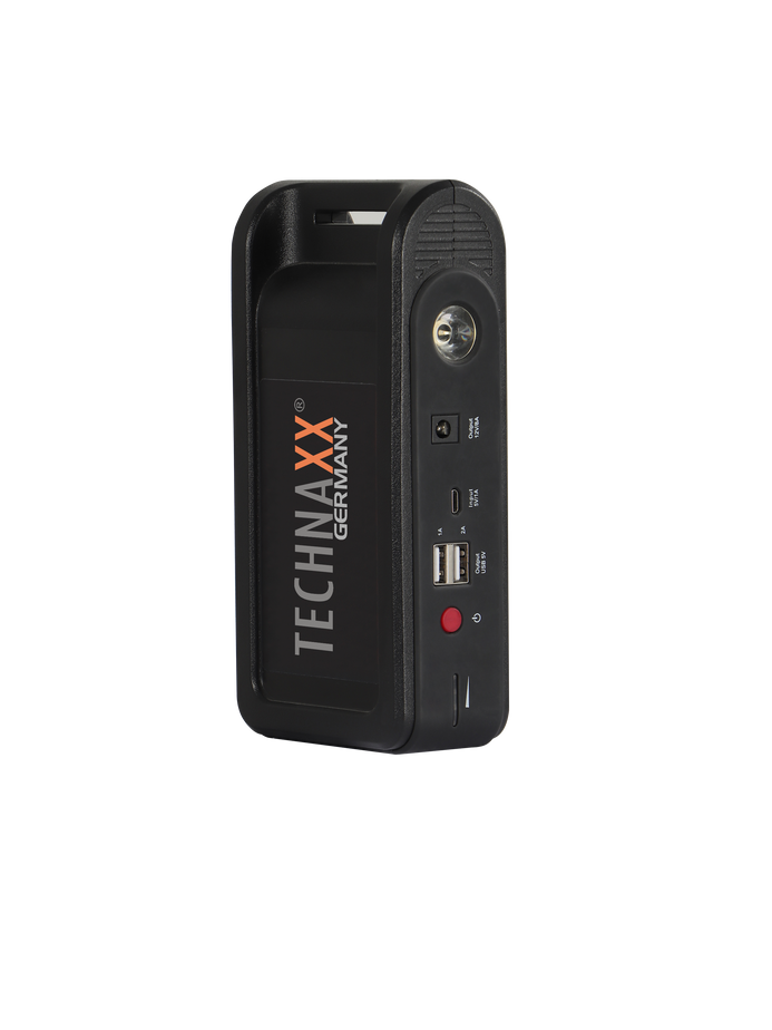 Verpackungsinhalt: - Technaxx Jump Starter TX-218, Adapterkabel mit Polzangen, AC Adapter, USB-Kabel, Adapter KFZ-Buchse, Gebrauchsanleitung